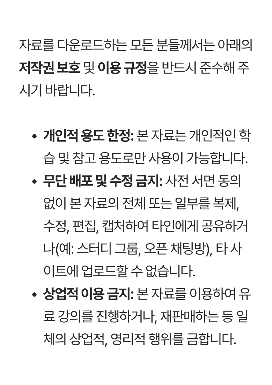 전자책은 구매자 본인만 사용할 수 있으며, 복제, 공유, 재배포는 금지되어 있습니다.