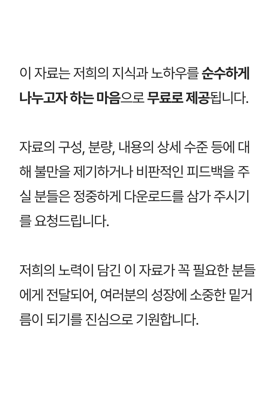 디지털 상품 특성상 다운로드 이후 환불은 어렵습니다. 단, 파일에 문제가 있는 경우 7일 이내 연락 주시면 처리 도와드릴게요.