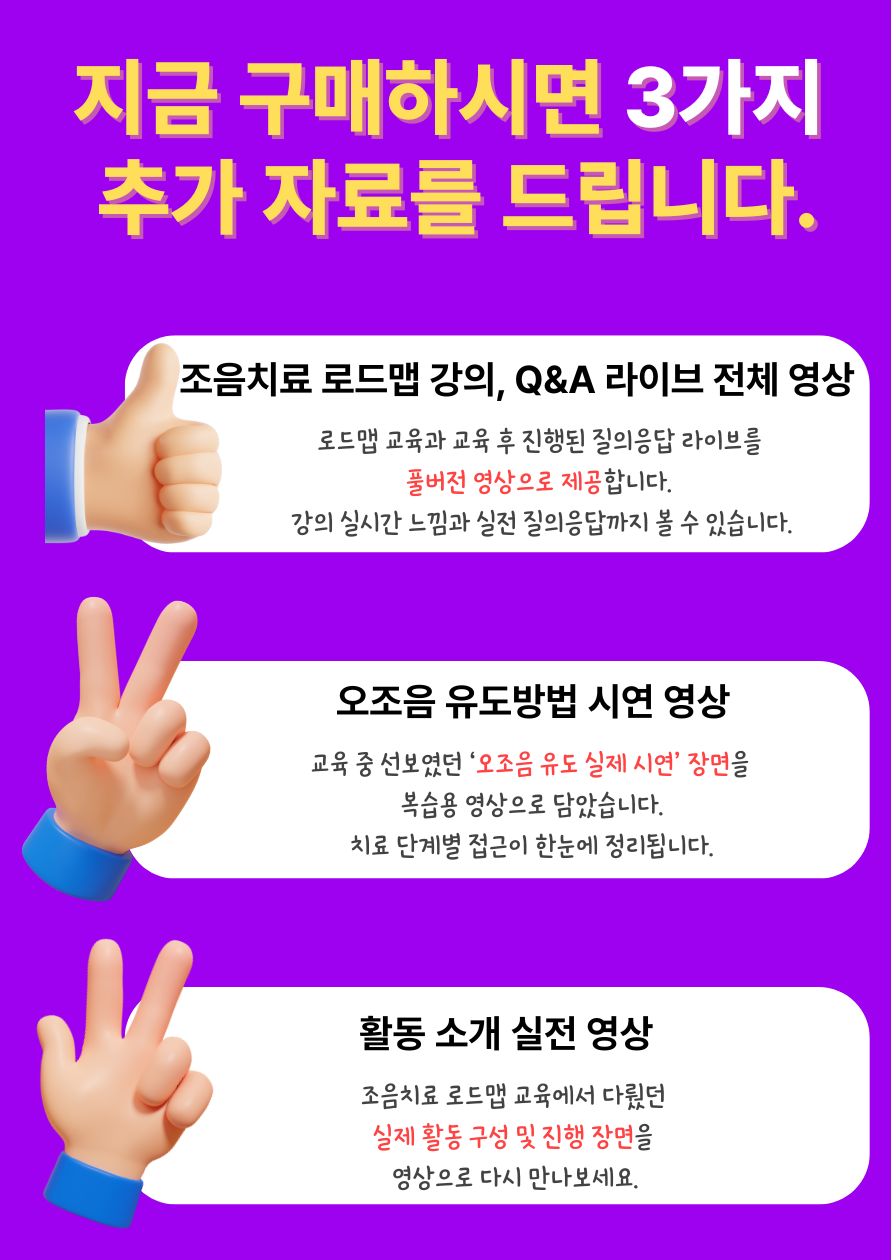 개인적으로 제일 자신없고 어려웠던게 조음이었습니다. 그러나 실습하고 공부를 하면서 궁금하고 더 잘가르치고 싶어서 강의를 검색하다가 우연찮게 발견하고 집중해서 강의를 잘들었던것같습니다. ㅅ를 ㄷ로 대치하고 유탭과 조음검사에서도 문제가 많아 궁금한거 투성이었는데, 궁금했던것들이 질의응답에서 나오고 많은 지도해주셔서 궁금증도 많은 조언도 얻은것같아 강의 추천드리고 유료강의도 궁금합니다!